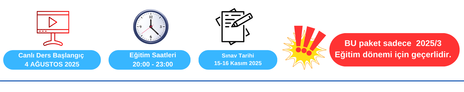 | Sermaye Piyasası Mevzuatı | 18:00 – 19:00 | 60 Dakika |